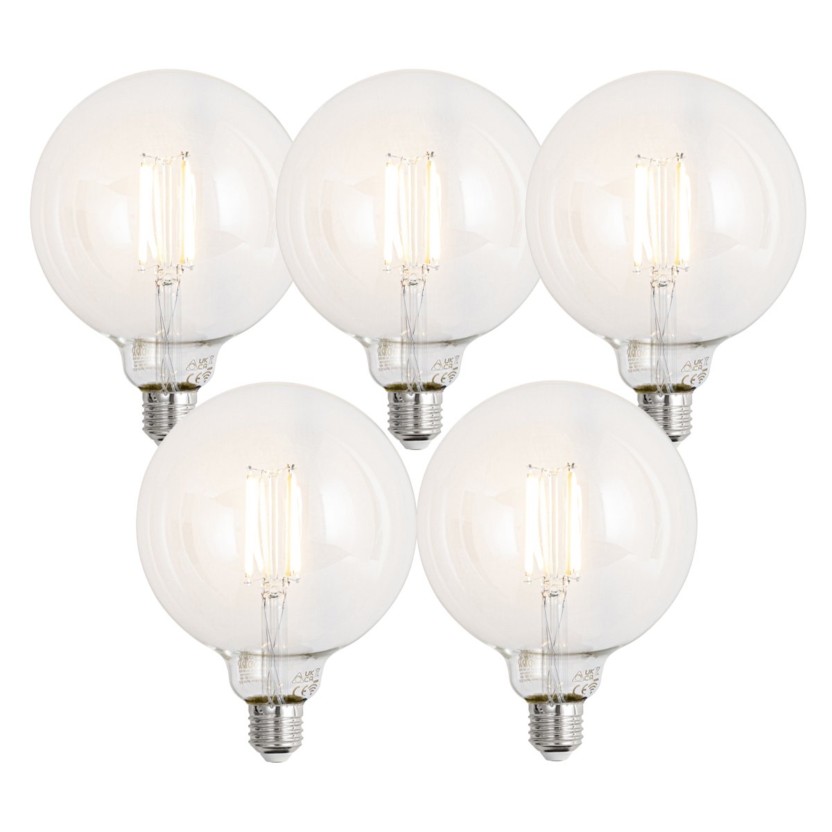 Sada 5 ks Inteligentné stmievateľné LED žiarovky E27 G125 číre 7W 806lm 2700-6500K