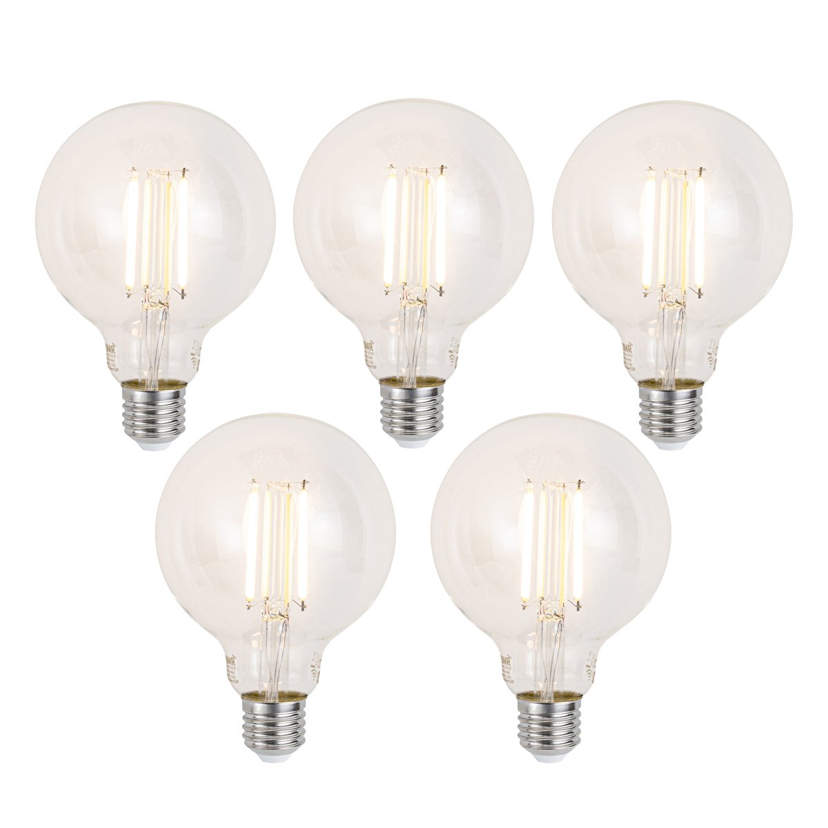 Sada 5 ks Inteligentné stmievateľné LED žiarovky E27 G95 číre 7W 806lm 2700-6500K